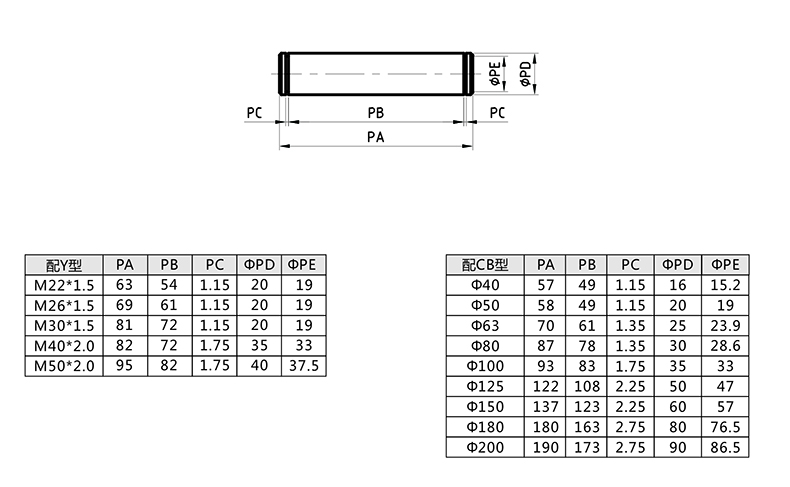 標準HOB+CB型 雙耳型外形安裝尺寸圖