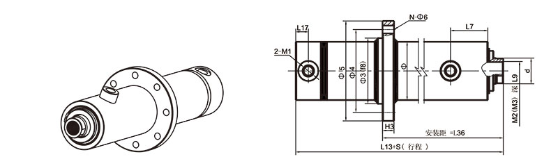 活塞桿端為內(nèi)螺紋桿頭耳環(huán)連接