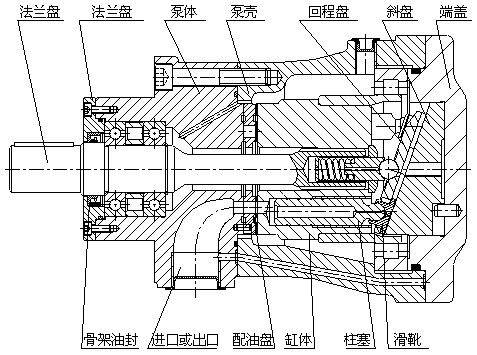 定量機構(gòu)中斜盤始終固定在定量端蓋上,不能改變柱塞的行程,所以其流量是固定的。