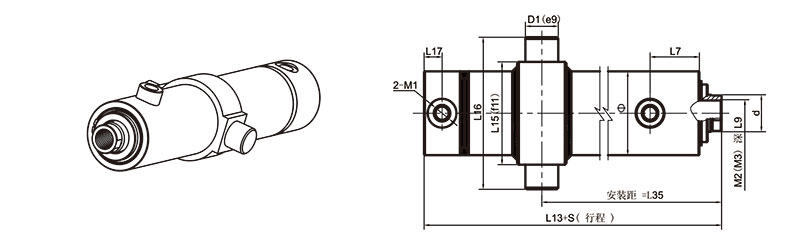 活塞桿端為外螺紋桿頭耳環(huán)連接