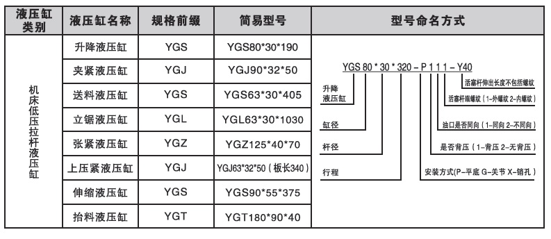 漢力達(dá)帶鋸床油缸型號(hào)命名方式
