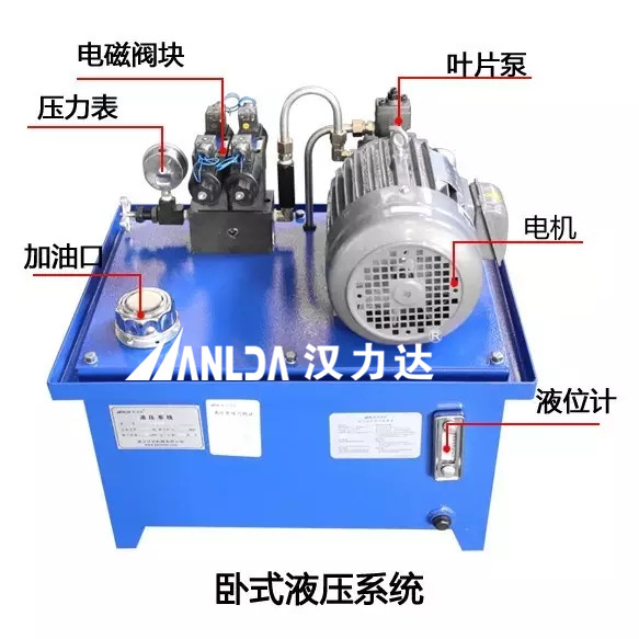 也稱為液壓泵站、液壓站、液壓油站等。液壓系統(tǒng)通常都是由液壓元件(動力元件、執(zhí)行元件、控制元件、輔助元件)和工作介質(zhì)兩大部分組成。液壓系統(tǒng)按照電機(jī)安裝方式,分為立式、臥式、旁置式液壓系統(tǒng)。用實拍圖片來直觀感受下液壓系統(tǒng)的組成:
